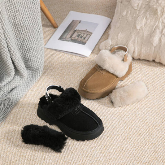 AUSTRALIAN SHEPHERD® 3-Way Style UGG Women Slippers Removable Wool Strap Slingback Muffin Fluffy AS 2082