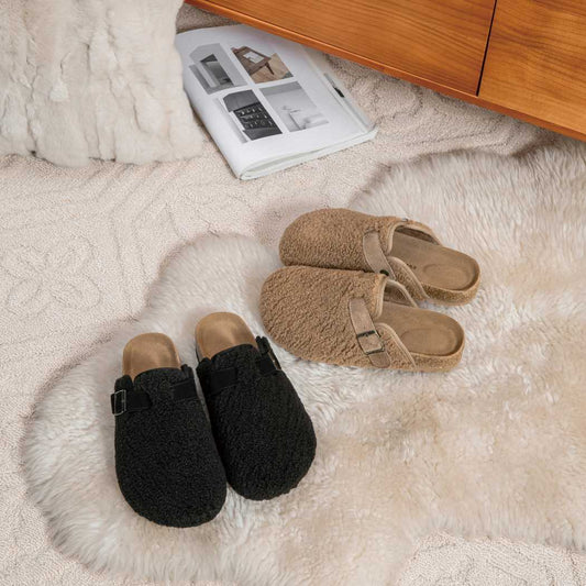 EVERAU® UGG Women Shearling Buckle Sandal Slides Greta EA 2057